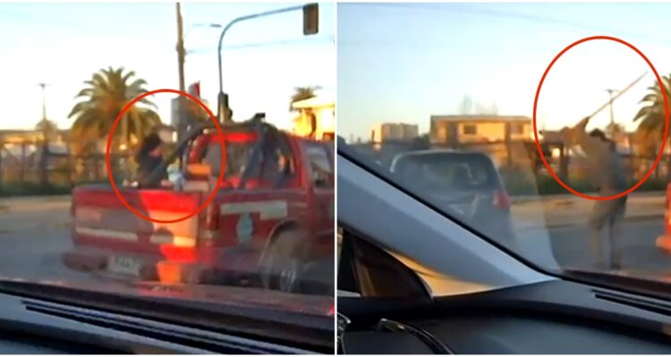 En un video compartido a Radio Bío Bío en Valparaíso, se observa cuando el conductor de la camioneta ataca con el palo de una pala al del citycar y luego este último saca del maletero de su auto un elemento para responder la agresión.