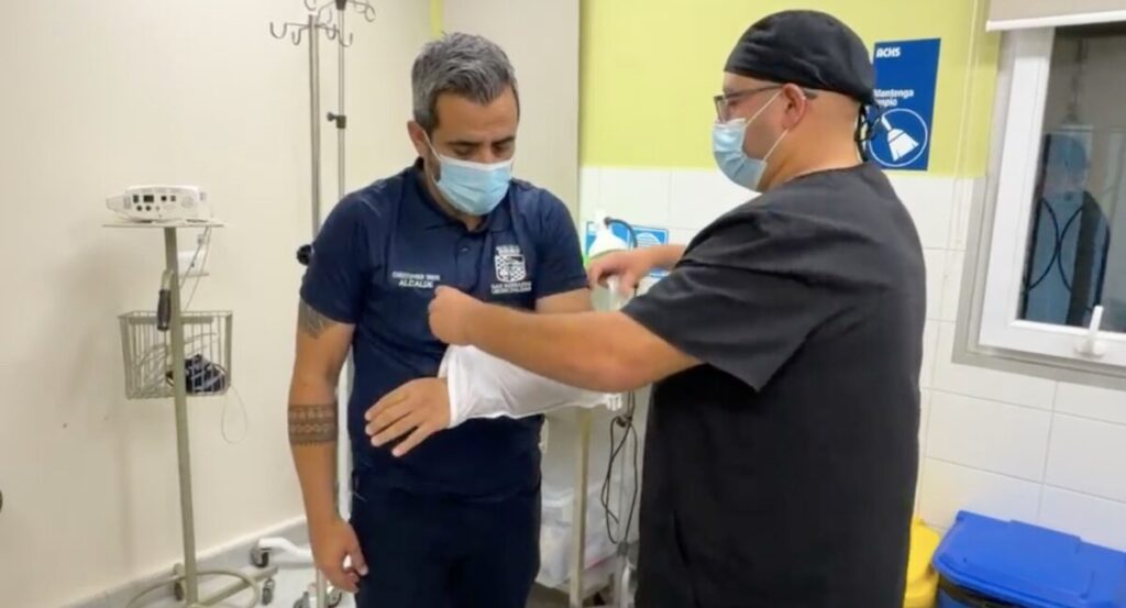 Una violenta agresión sufrió este miércoles el alcalde de San Bernardo, Christopher White, mientras encabezaba un operativo de limpieza en el sector de Parque San Bartolomé, en la intersección de San Lorenzo con Juan Pablo II.